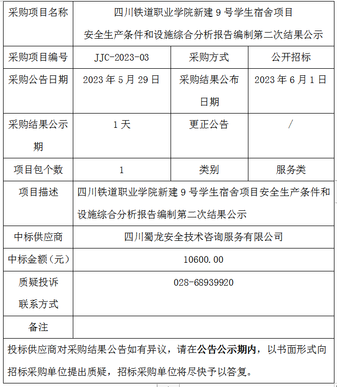 8797威尼斯老品牌新建9号学生宿舍项目安全生产条件和设施综合分析报告编制第二次结果公示
