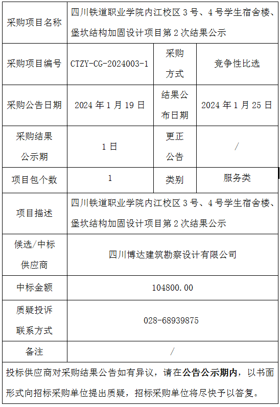 8797威尼斯老品牌内江校区3号、4号学生宿舍楼、堡坎结构加固设计项目第2次结果公示