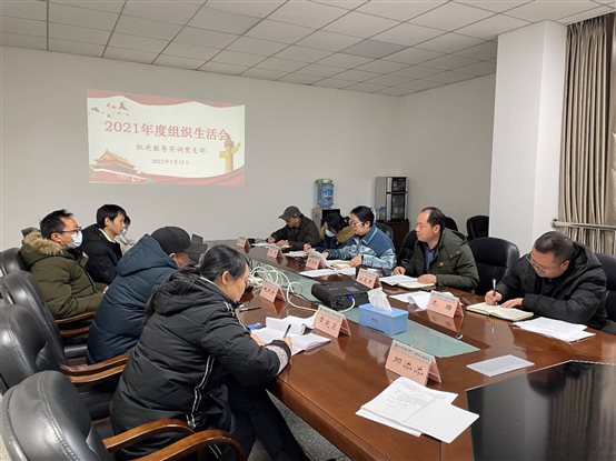 2022年1月12日机关教务实训党支部全体党员在行政楼第二会议室开展了2021年度组织生活会。会议由党支部书记陈风玲同志主持。