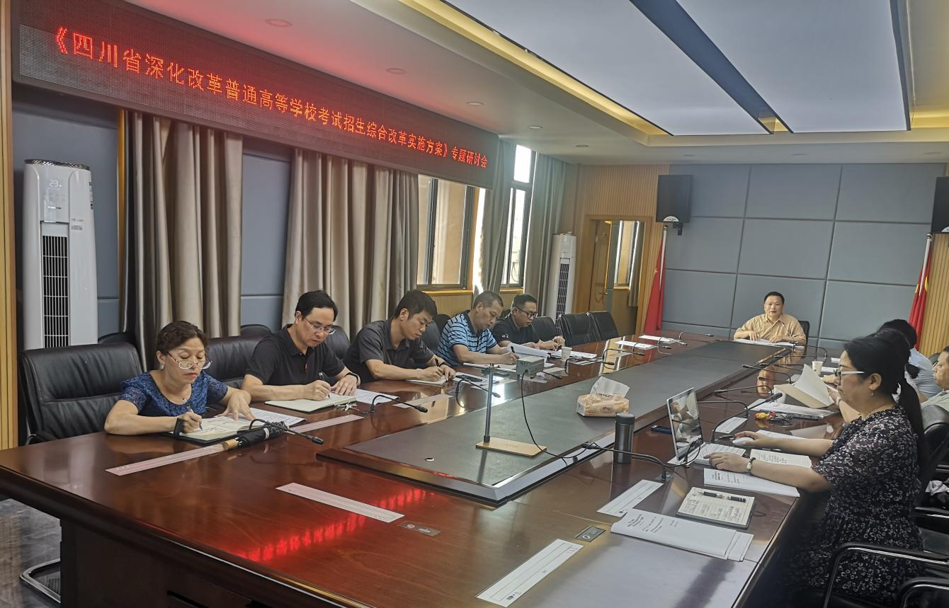 6月30日下午,学校在行政楼第五会议室召开《四川省深化改革普通高等学校考试招生综合改革实施方案》的学习研讨会。教务处、各教学单位负责人、招生科科长参加会议。会议由学校党委委员、副校长黄恩兴主持。
