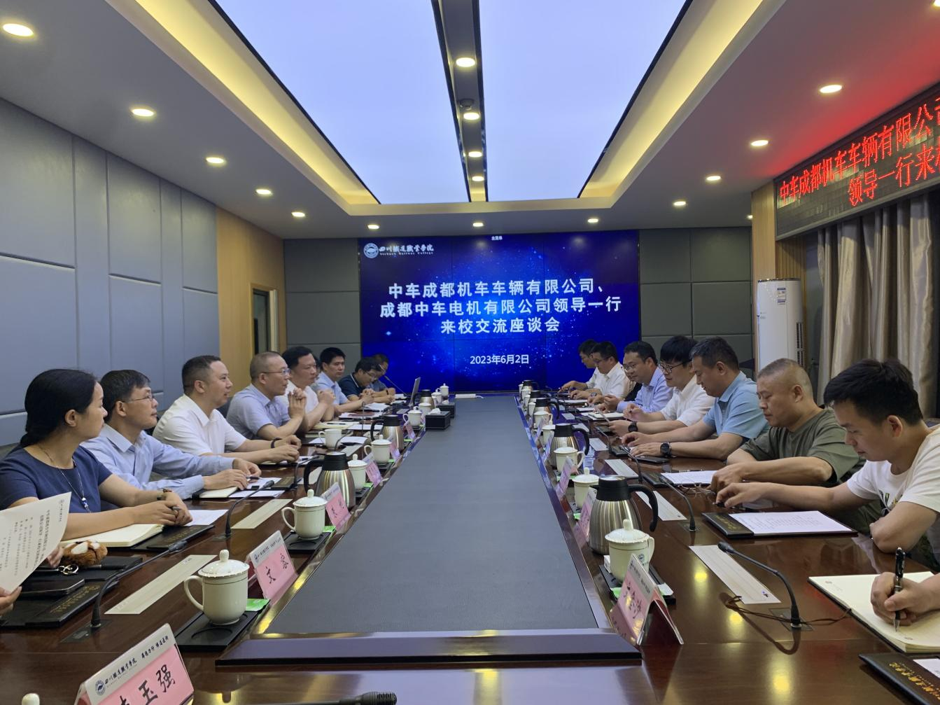 6月2日,中车成都机车车辆有限公司党委书记、董事长罗斌,党委副书记、纪委书记石业勇,人力资源部部长邵研,成都中车电机有限公司党委副书记、总经理郭峰,副总经理文金沙,副总经济师、综合管理部经理姜粤,成都工匠张广川、龚世勇、赵先才一行9人到校开展校企合作、产教融合交流座谈。党委书记贺兆轩主持会议并讲话。