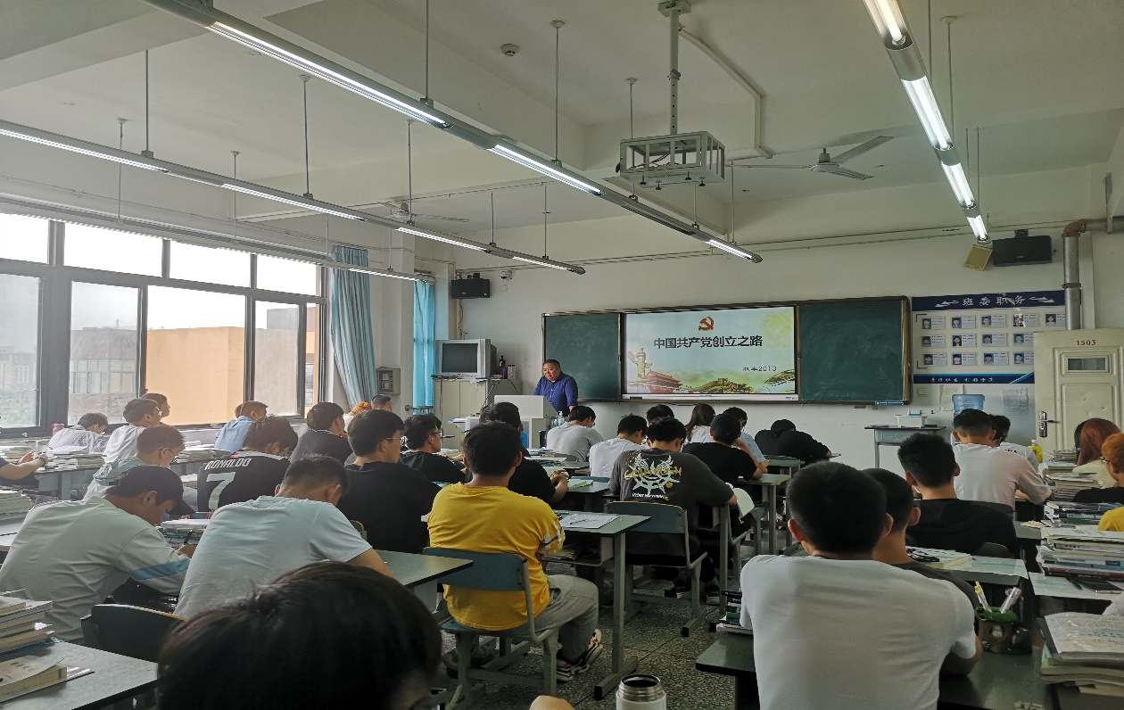 2021年6月9日上午10:20,继续教育与科研党支部书记周江涛同志在1503教室为铁道机车20T3班学生讲党课,主题是:中国共产党的创立之路。