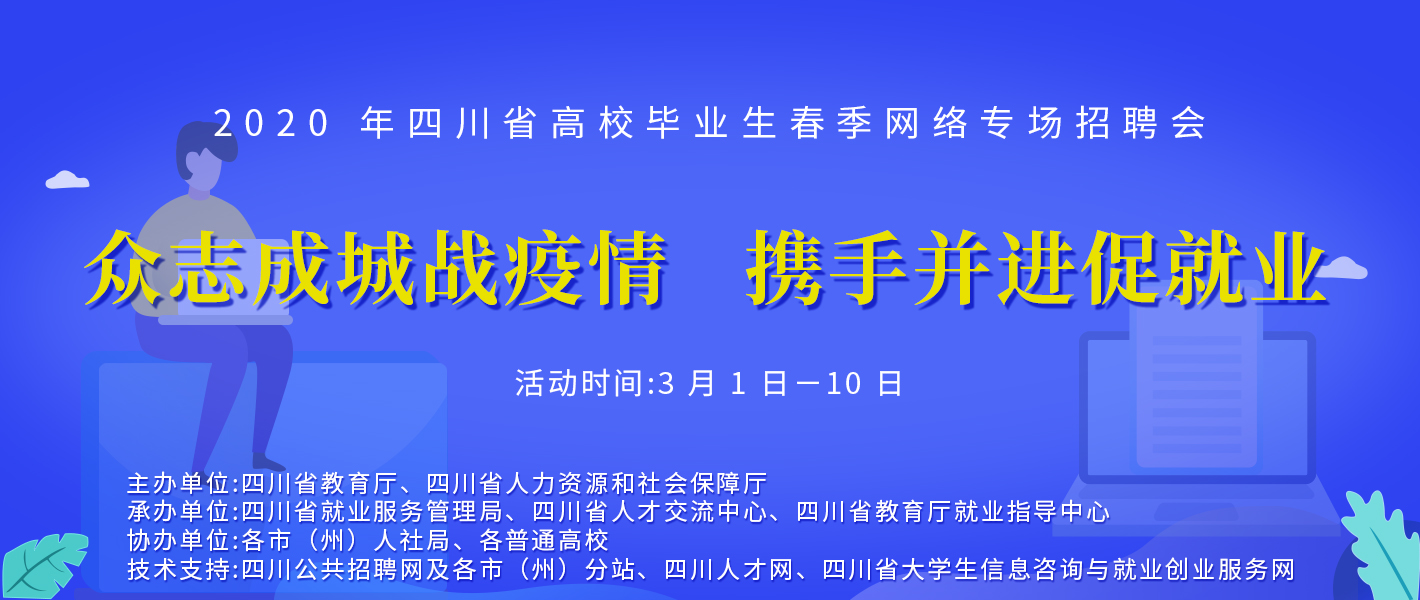 教育厅、人力资源和社会保障厅定于 3 月 1 日—10 日联合举办2020年四川省高校毕业生春季网络专场招聘会。