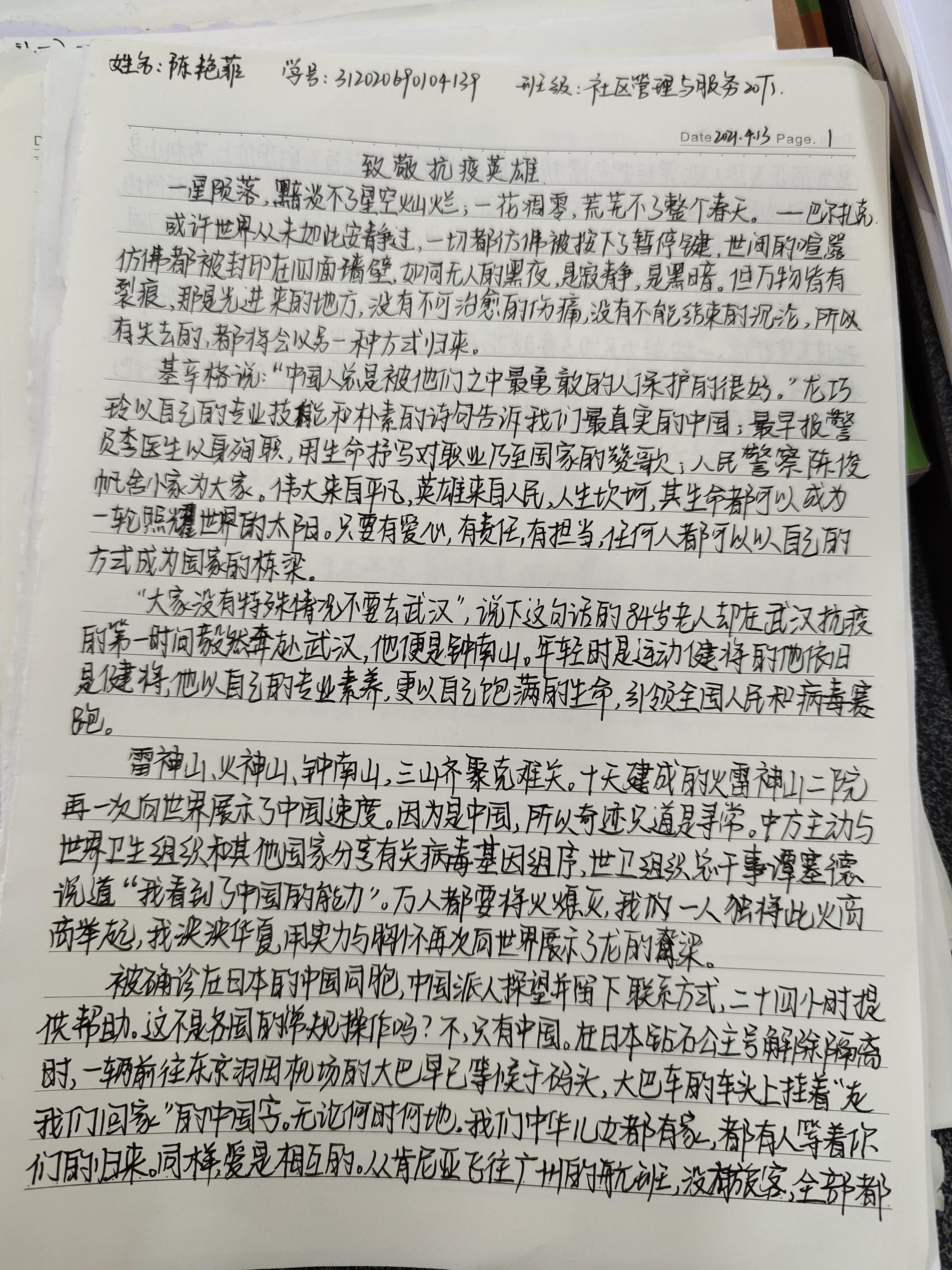 管理系所有班级于2021年4月12日开展“清明寄托哀思·缅怀抗疫英雄”主题班会。