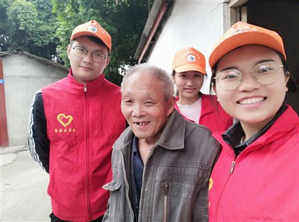志愿者与老人开心合影