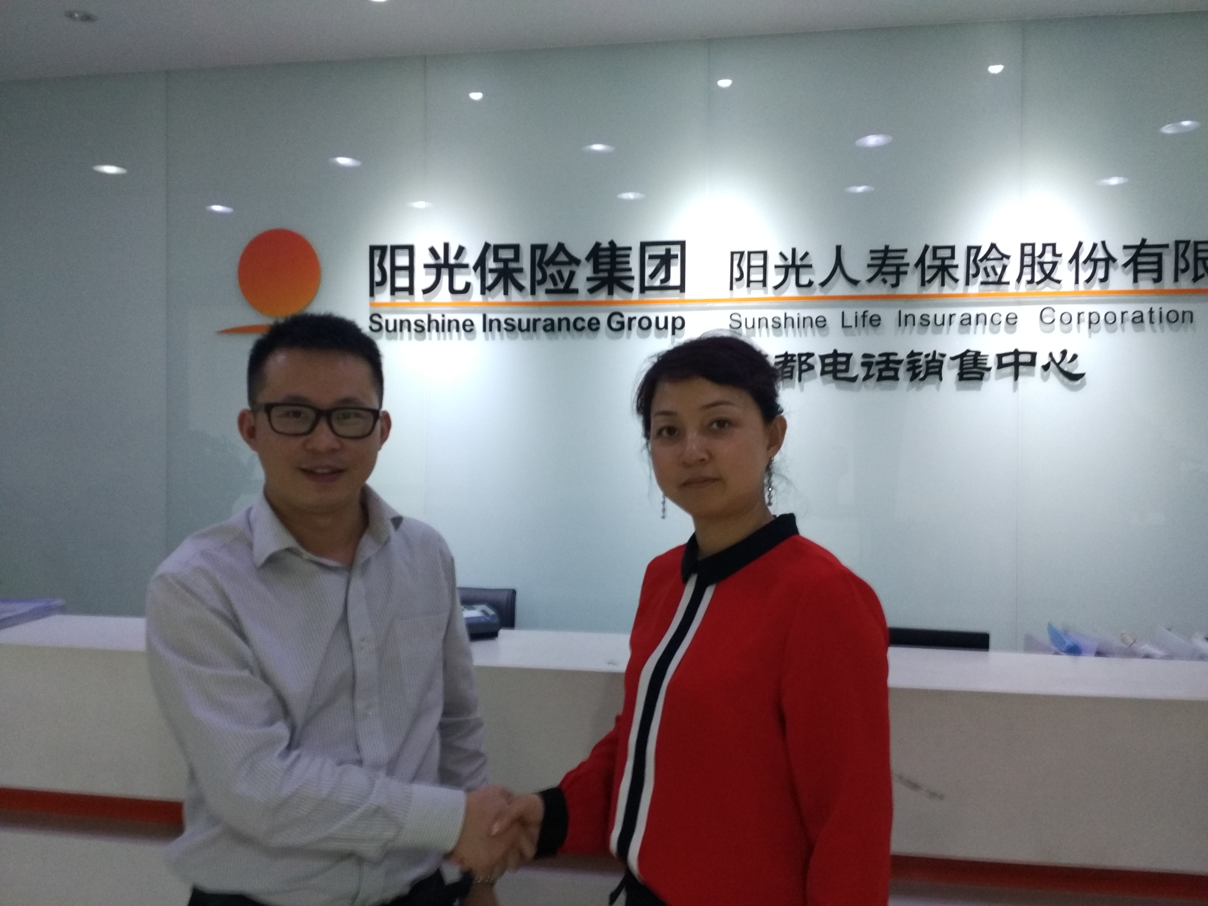 2016年文容主任前往位于成都市青羊区的阳光人寿保险股份有限公司四川分公司的负责人洽谈校企合作相关事宜