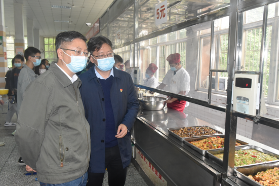 在学生食堂,吴斌对菜品进行了详细检查,询问了食堂的安全保障措施、菜品价格和学生对食堂的满意程度等,他表示校园食品安全事关师生身体健康和生命安全,要营造好安全健康的育人环境。
