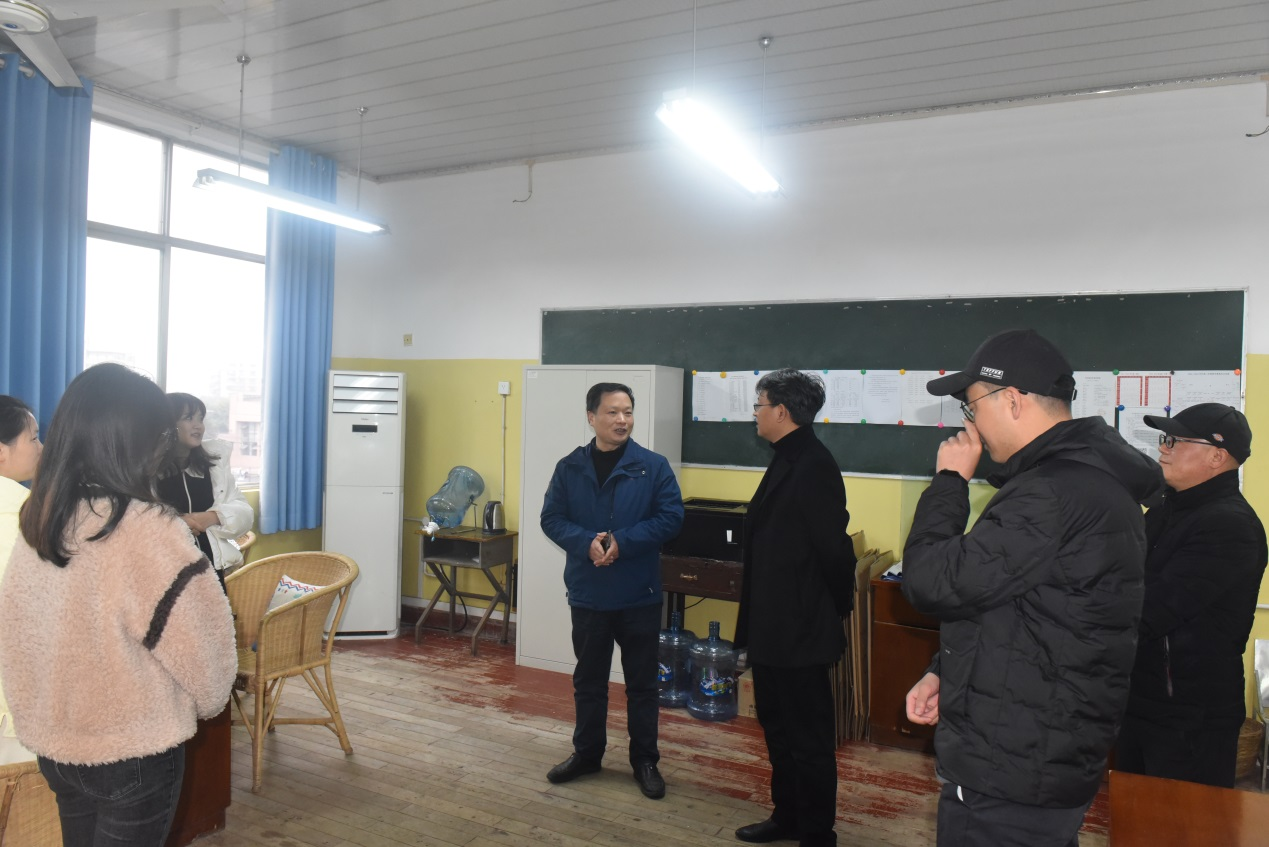 在教学楼,黄恩兴先后到分团委、学生科、教务科与教职工进行了亲切的交谈。在交谈中黄恩兴询问了上学期学生活动情况、学生社团开展情况以及学生心理健康等情况,他要求内江校区分团委和班主任在后疫情时期,围绕学校团委安排布署,积极组织开展适合内江校区学生的各项活动,通过这些活动全面培养学生的技能,特别是说、写的能力,让学生得到全面的发展;另外要求班主任要多与学生交流,通过交流和关心来了解学生,感化学生,以此来达到为党育人、为国育才的目的。在教务科黄恩兴查看了教师教案,他要求教师要按学校的新要求写好教案。