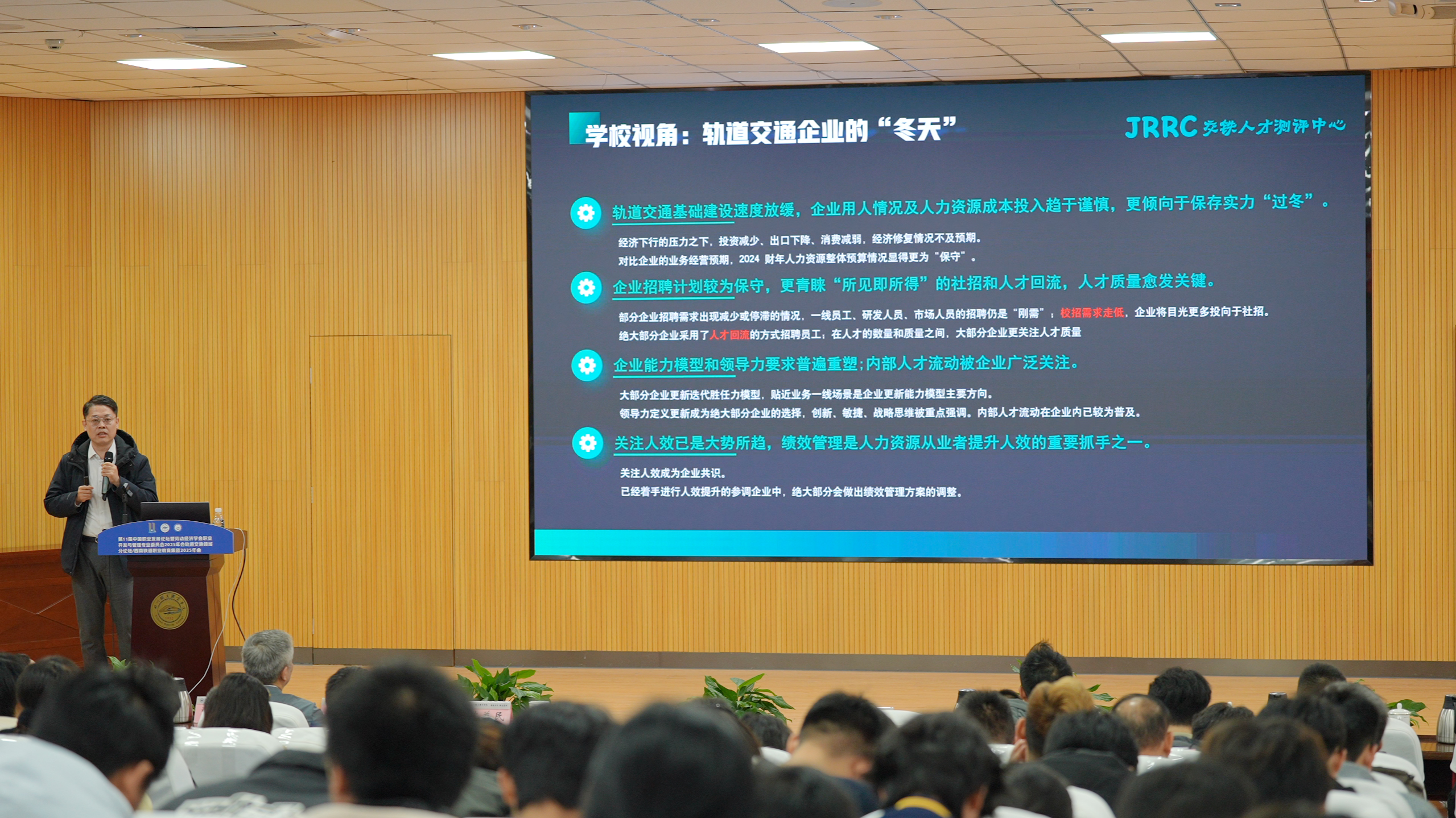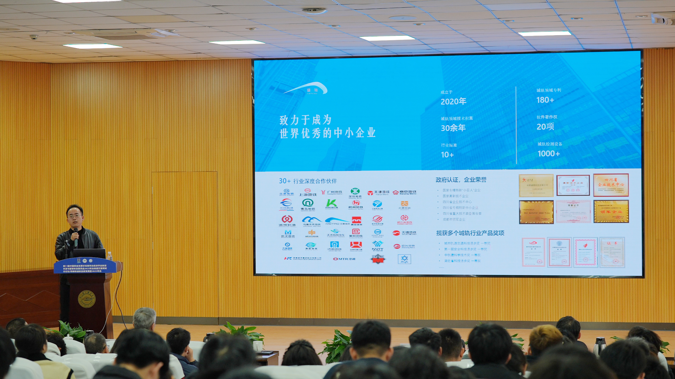 行业交流中,成都盛锴科技唐朋提出AI驱动的智能维保方案与人才匹配路径;北京华晟经世余文千强调职教数字化转型需构建专业垂类模型与AI生态;交铁人才测评(成都)有限公司梁瑞聚焦行业人才发展难题,分享数据驱动的培养解决方案。