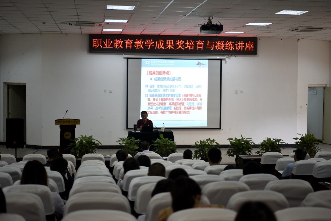 为提升我院教师申报教育教学成果奖的能力,5月19日下午,学院特邀成都航空职业技术学院党委副书记、副校长陈玉华教授在学术报告厅开展了职业教育教学成果奖培训与凝练讲座。讲座由副院长刘昊君同志主持,各系部主任、教研室主任、专业带头人、骨干教师及部分教辅行政人员参加了本次讲座。