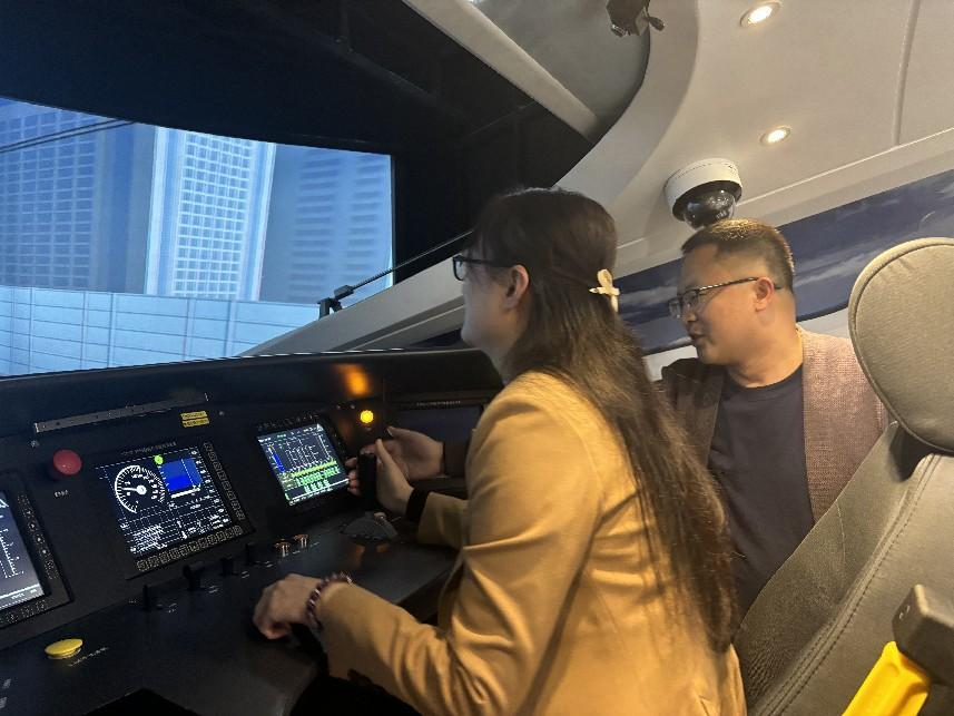 座谈会前,梁琼处长一行实地参观了威尼斯复兴号六自由度模驾、城轨综合演练场、动车组检修实训室、复兴号模拟驾驶实训室,就实训基地建设、人才培养等方面进行了交流。