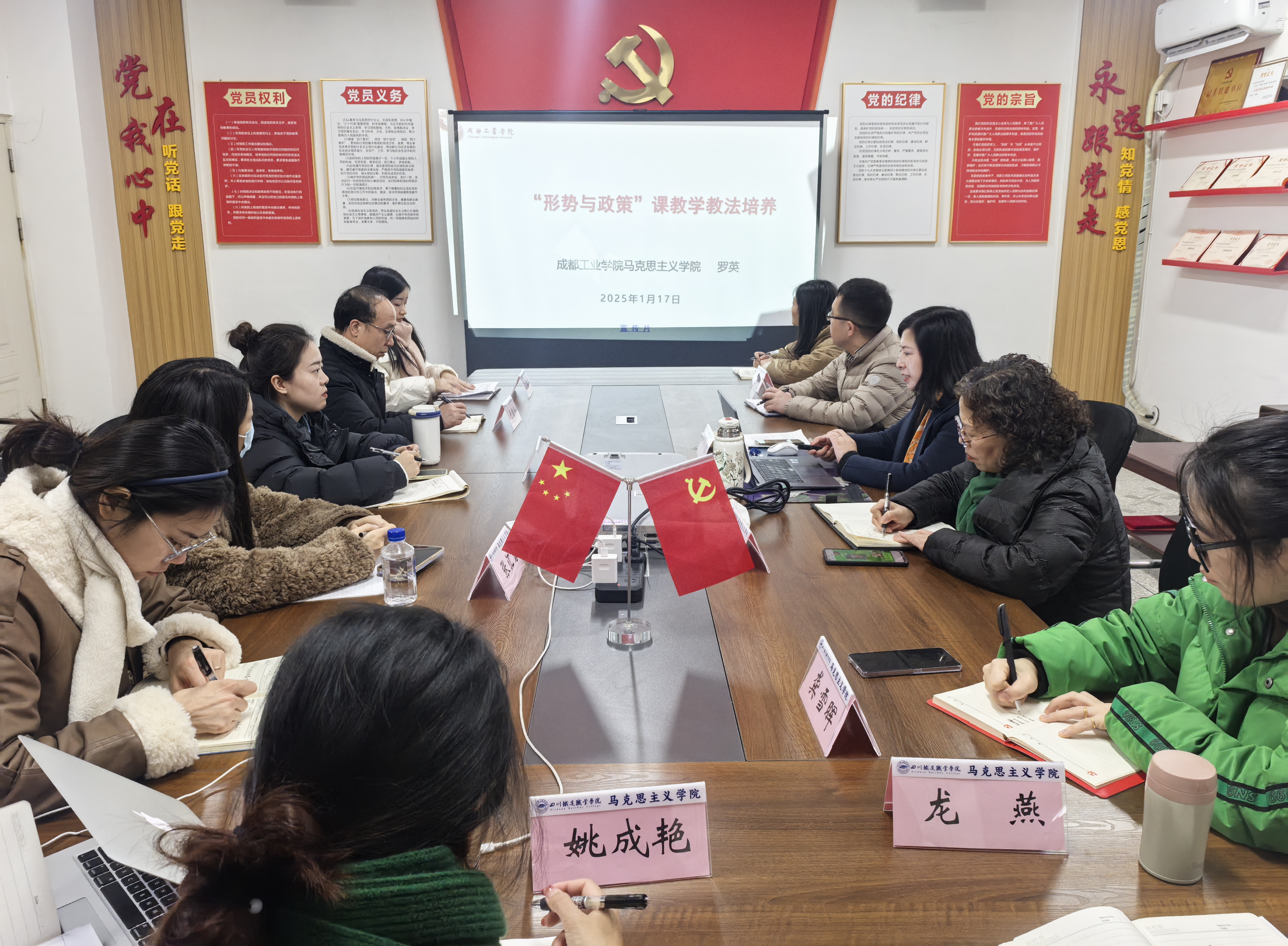 为提高马克思主义学院教师“形势与政策”课程教学质量,加强教师教学能力培养,1月17日下午,马克思主义学院邀请教育部高校示范马克思主义学院和优秀教学科研团队负责人、全国优秀教师、“天府青城计划”教育领军人才,四川学校思政课教师年度人物,四川省高校思政课“罗英名师工作室”主持人、成都工业学院罗英教授在2404会议室进行“‘形势与政策’课教学教法培养”专题指导。学院全体教师参加。