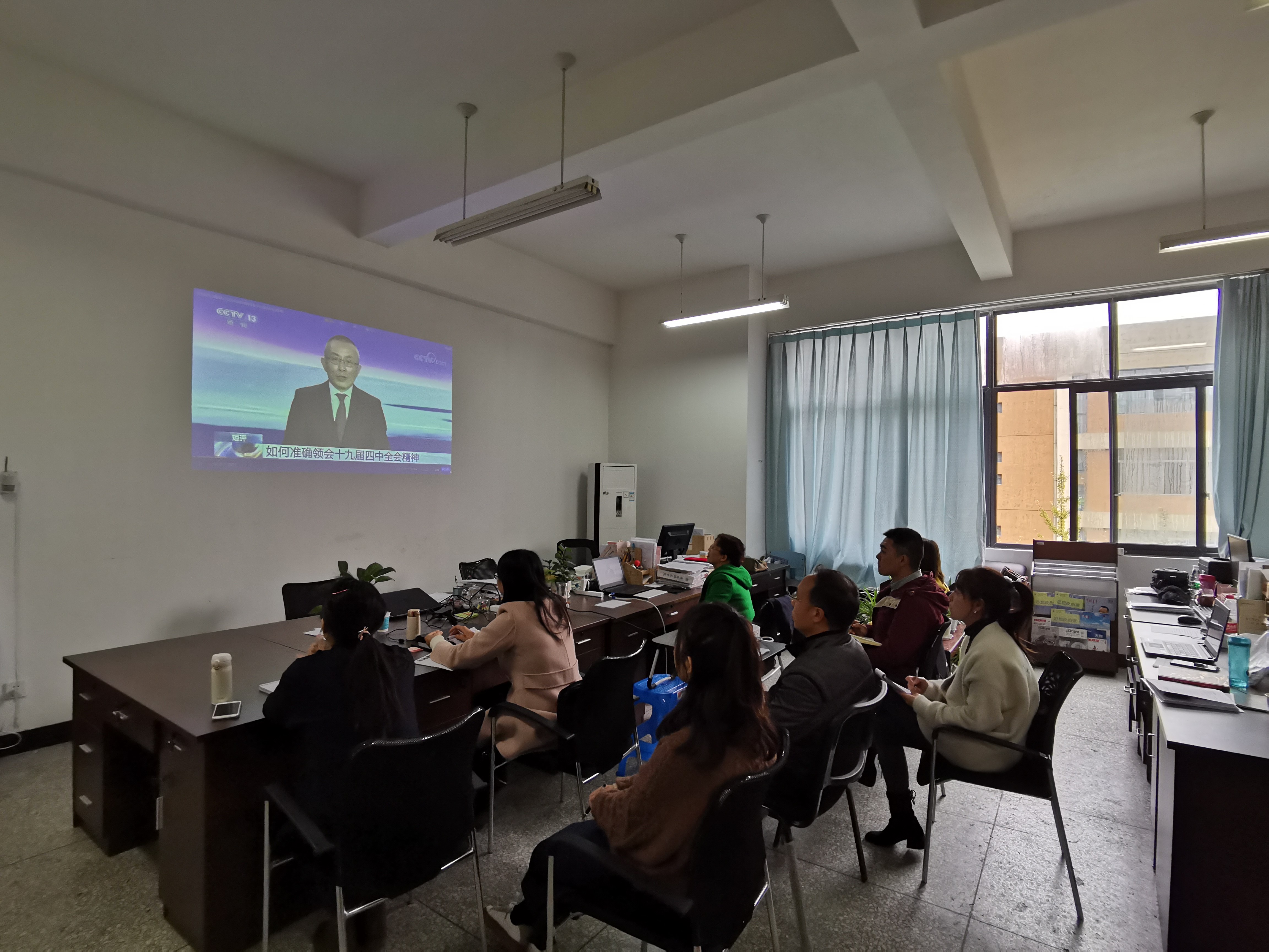 中国共产党第十九届中央委员会第四次全体会议于10月28日到31日在京召开。为深入学习贯彻党的十九届四中全会精神。思政党支部于11月11日组织全体党员教师在2404教室进行学习。