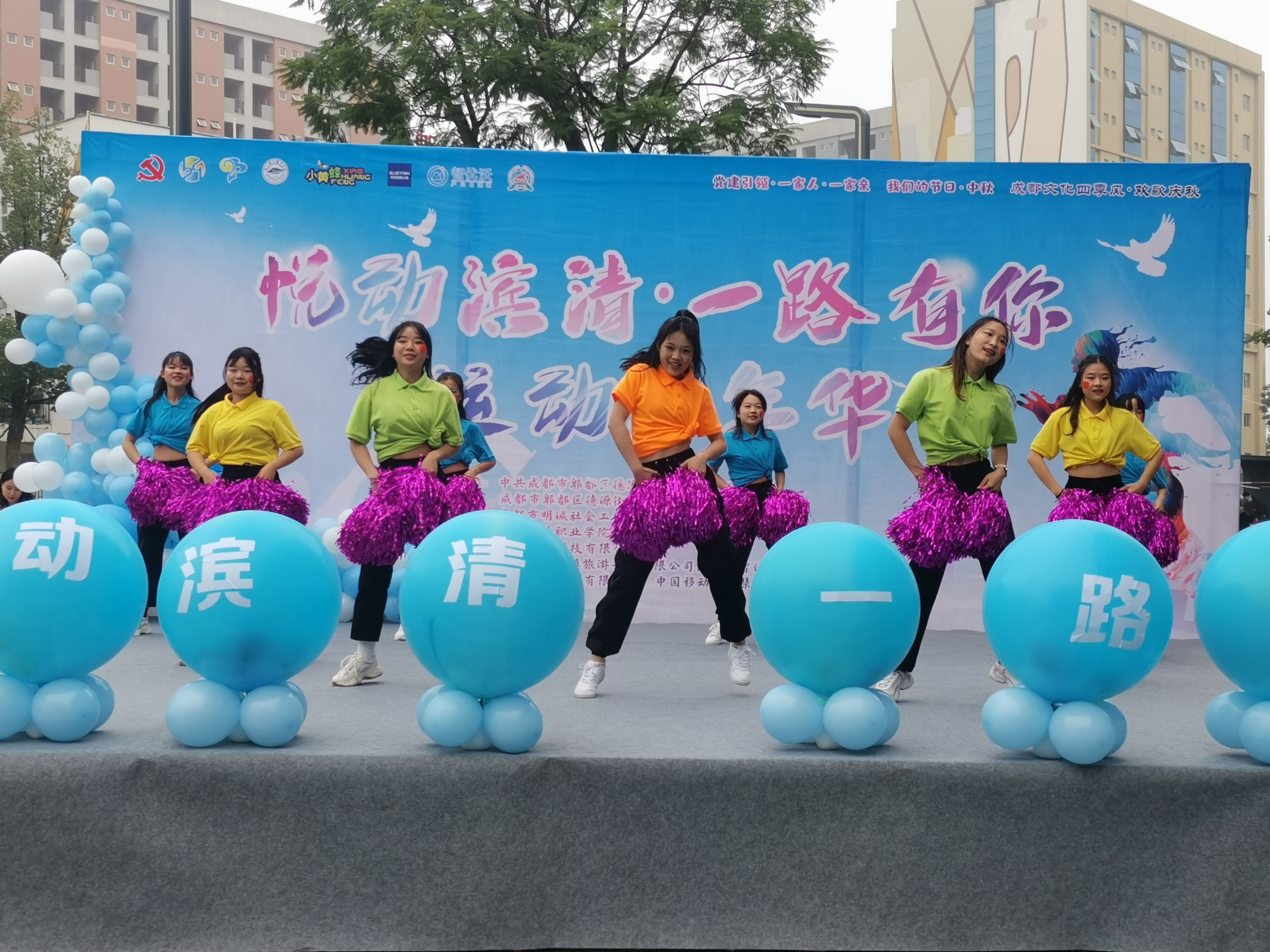 在国庆中秋双节来临之际,受郫都区德源街道滨清路社区、郫筒街道岷阳社区邀请,青年马克思主义者学习研究社(以下简称“青马社”)参加了上述两个社区举办的“悦动滨清·一路有你”运动嘉年华、“迎中秋庆国庆·同圆幸福家园梦”大型文艺汇演,实现“校社”共建共育,9月27日上午,13名青马社学生代表在思政部龙燕老师的带领下参加了此次活动。