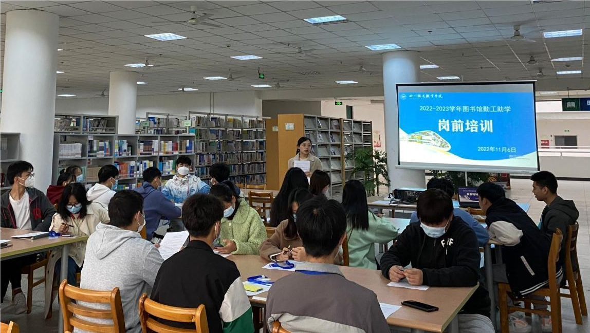 为加强对勤工助学学生的指导和管理,帮助勤工助学学生尽快适应岗位,图书信息中心于11月6日在图书馆2楼阅读区开展2022-2023学年勤工助学学生岗前培训。通过双选会的初选和后期单独面试,本次共招聘31名同学参加图书馆勤工助学工作。