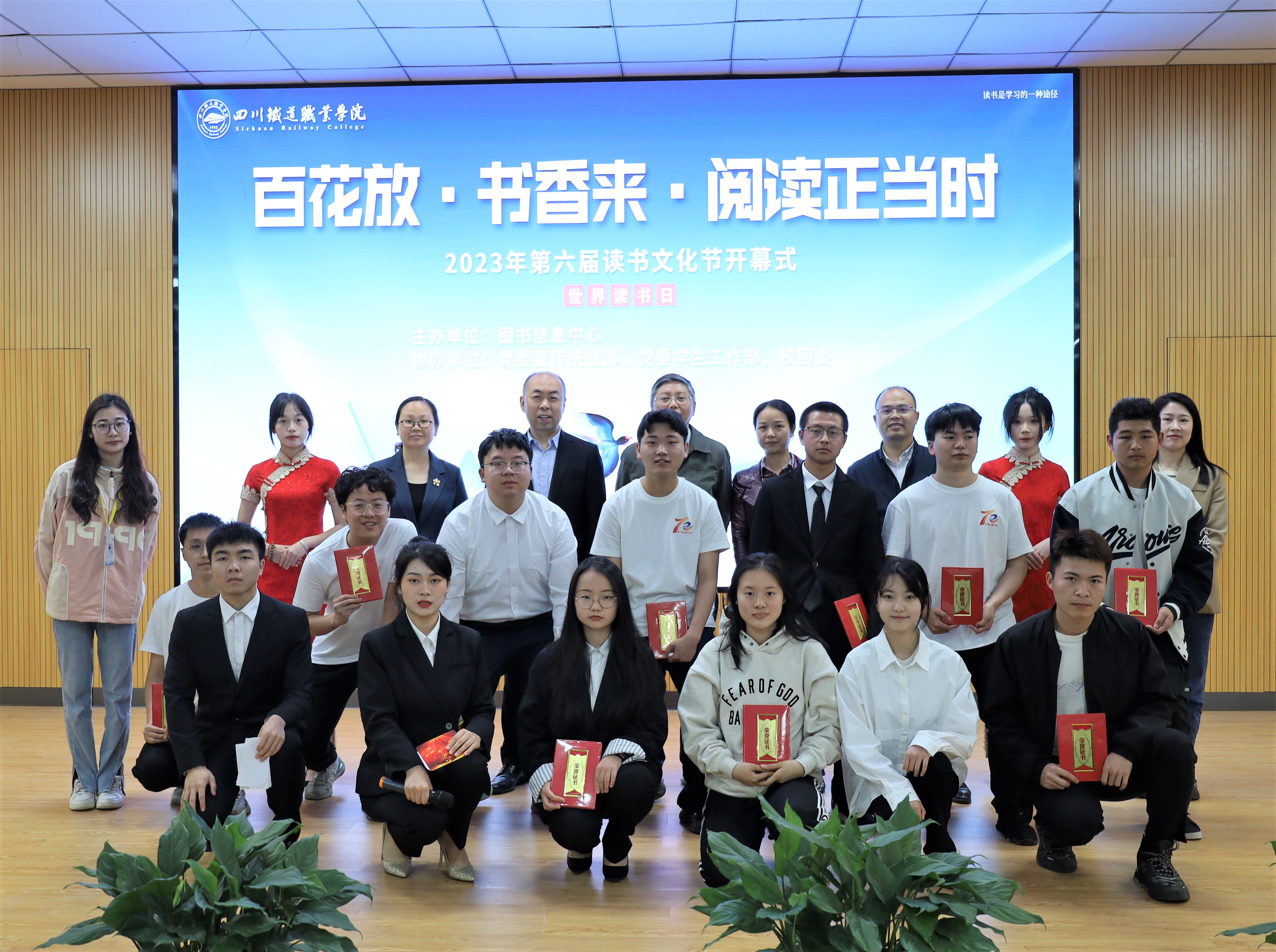 党的二十大报告提出,要“深化全民阅读活动”。在第28个世界读书日之际,学校举办了“百花放·书香来,阅读正当时”为主题的读书文化节活动。4月24日,在学术报告厅举行了活动启动仪式。党委委员、副校长吴斌,党委宣传统战部部长杨海涛,党委学生工作部/校团委书记朱俐,图书信息中心副主任何中华,图书服务部主任李本强,公共教学部教师刘媛,学生发言代表杨茜凌,二级学院学生代表和图书信息中心全体老师参加了此次活动。