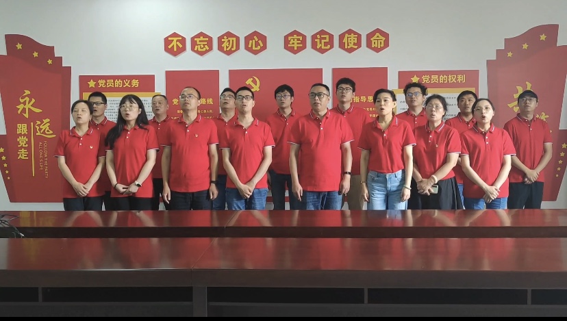 最后,全体教职工一起唱红歌《奔小康》和《没有共产党就没有新中国》,歌声在整个会议室飘荡,旋律慷慨激昂,歌声催人奋进。