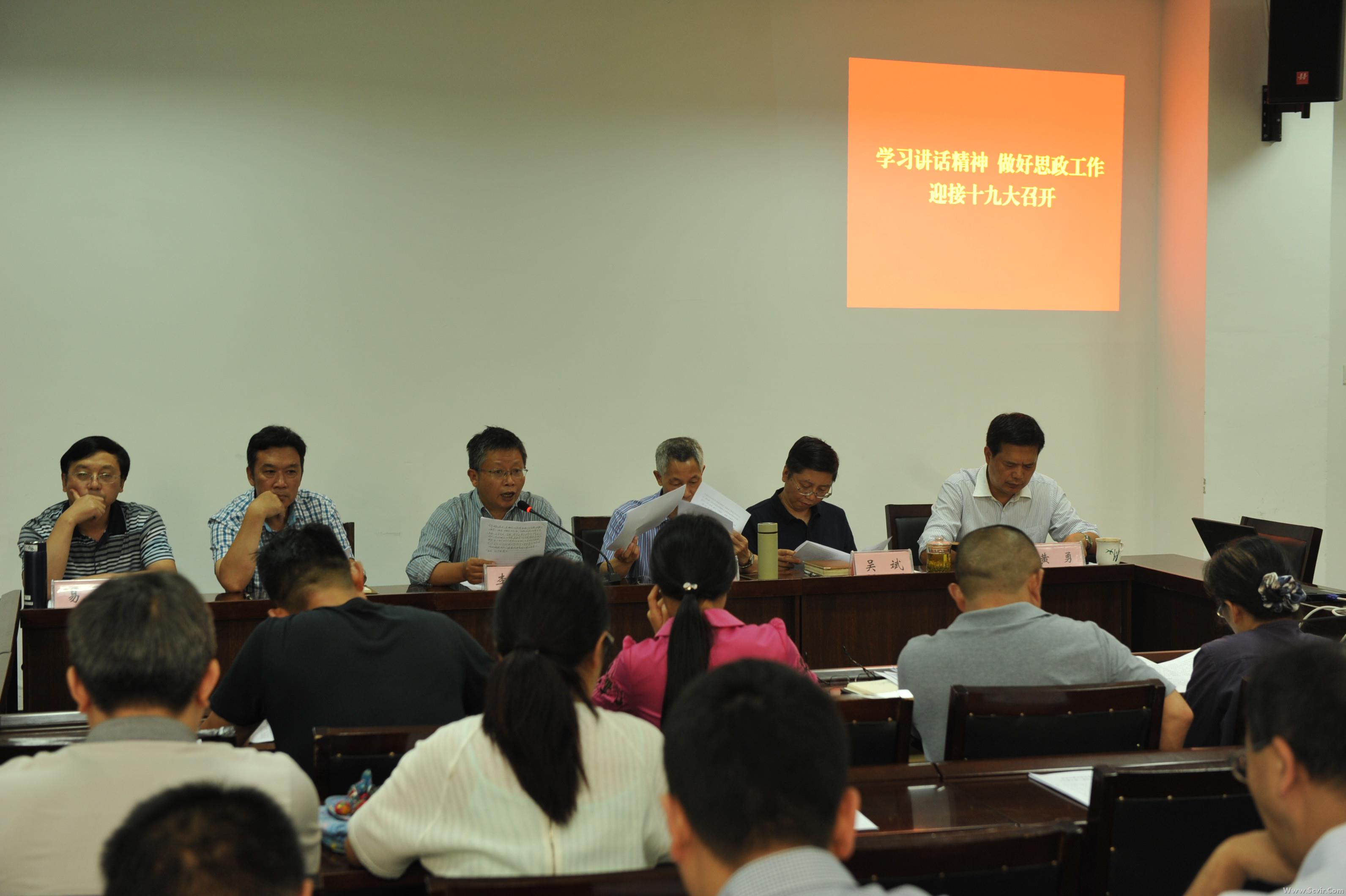 会议集中学习了习近平总书记7月26日的讲话精神,学习了教育部部长陈宝生的文章《切实推动高校思想政治工作创新发展》和《伟大时代需要弘扬黄大年精神》。黄大年同志的感人事迹激发与会人员以更饱满的热情投入到学院的改革发展中,积极迎接党的十九大的胜利召开。
