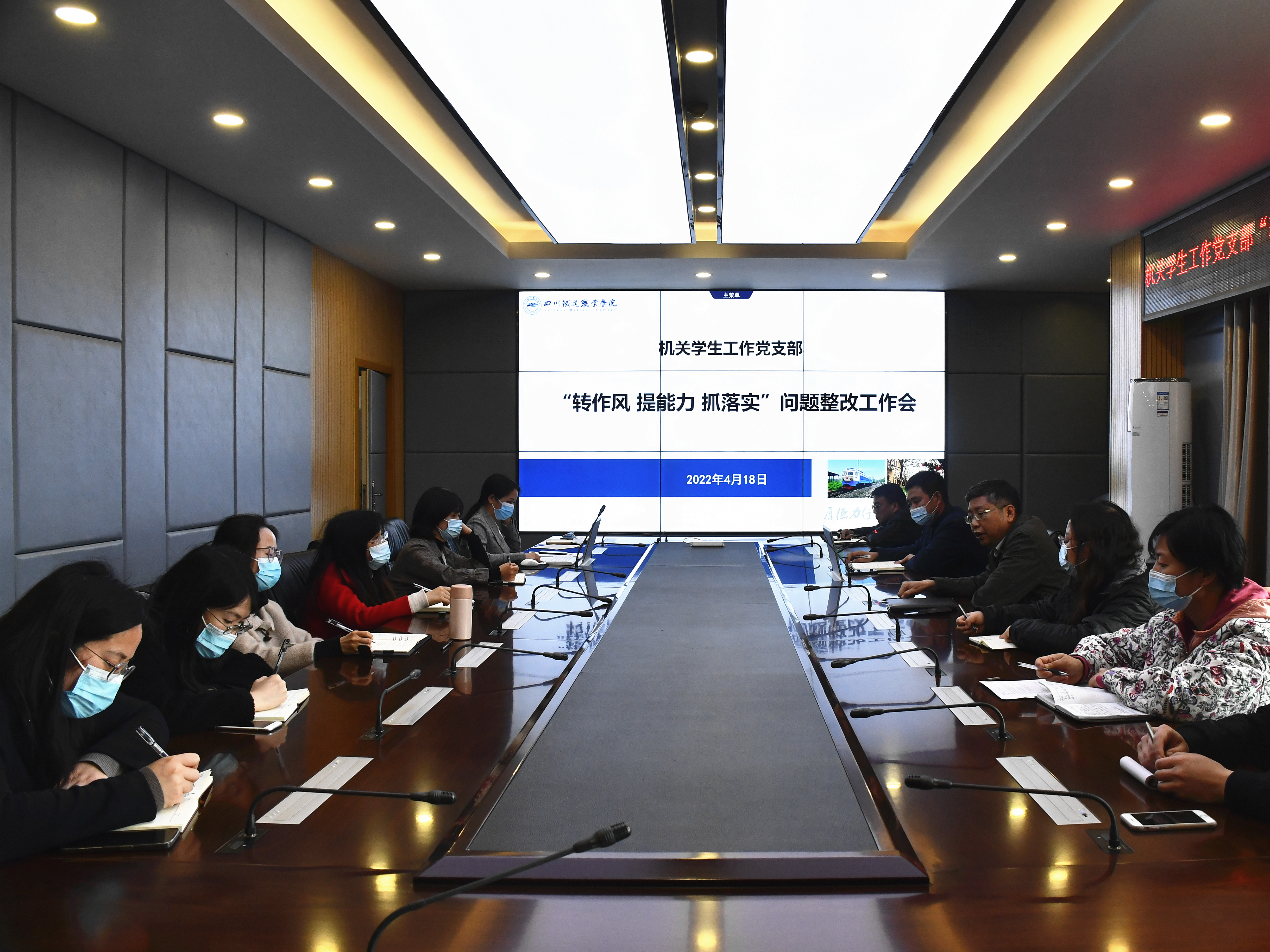 4月18日下午,机关学生工作党支部在第五会议室召开扩大会议,开展“转作风、提能力、抓落实”问题整改工作会。吴斌副校长以普通党员身份参加会议,学生处/就业处、校团委全体成员参加会议,会议由支部书记朱俐主持。