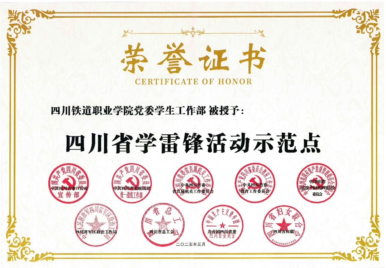 近年来,学校党委学生工作部充分发挥“全国党建工作样板党支部”示范引领作用,践行雷锋精神。秉承铁道精神铸忠诚。秉承“人民铁路为人民”服务理念,连续11年,开展“祖国再大,我也要助您平安回家”支援铁路春运志愿服务,累计组织师生近十万人次,服务旅客百万余人、运输里程数千万公里。护航平安中国显担当。打造省级思政精品项目——“铁小川”志愿服务项目,每年赴铁路沿线开展铁路安全知识宣传30余次、覆盖群众两万余名,构建“家+校+社”铁路沿线安全教育新模式,成立省内首个铁路护路联防培训基地,在省内高校中首设“校园献血日”。助力乡村振兴展作为。组建20余支志愿服务团队,与战旗村等24个学校周边村社结对,形成“20公里志愿服务圈”,打造“青春志愿·爱在社区”服务品牌,开展安全用电、禁毒防艾、预防结核等宣传,组织大学生“三下乡”“返家乡”社会实践。