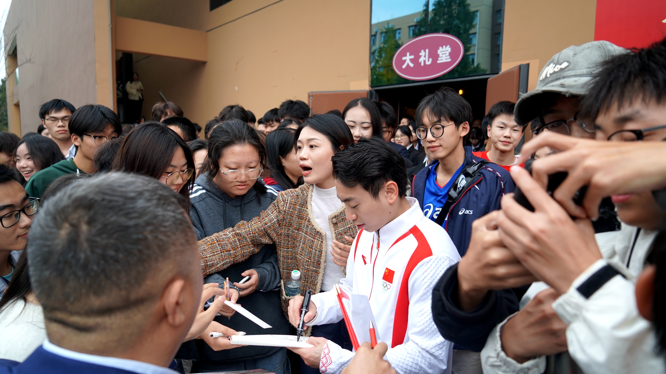 邹敬园在互动环节回答了师生们关心的问题。面对紧张情绪,他用清晰的目标和扎实的训练去克服;面对挫折低谷,他说热爱可抵万难,厚积方可薄发;面对伤病压力,他依靠团队、依赖队友、依托祖国,用意志和毅力扛起为国争光的责任。他激励师生们在实现梦想的道路上,追求极致,拼搏到底,绽放出最耀眼的光芒。