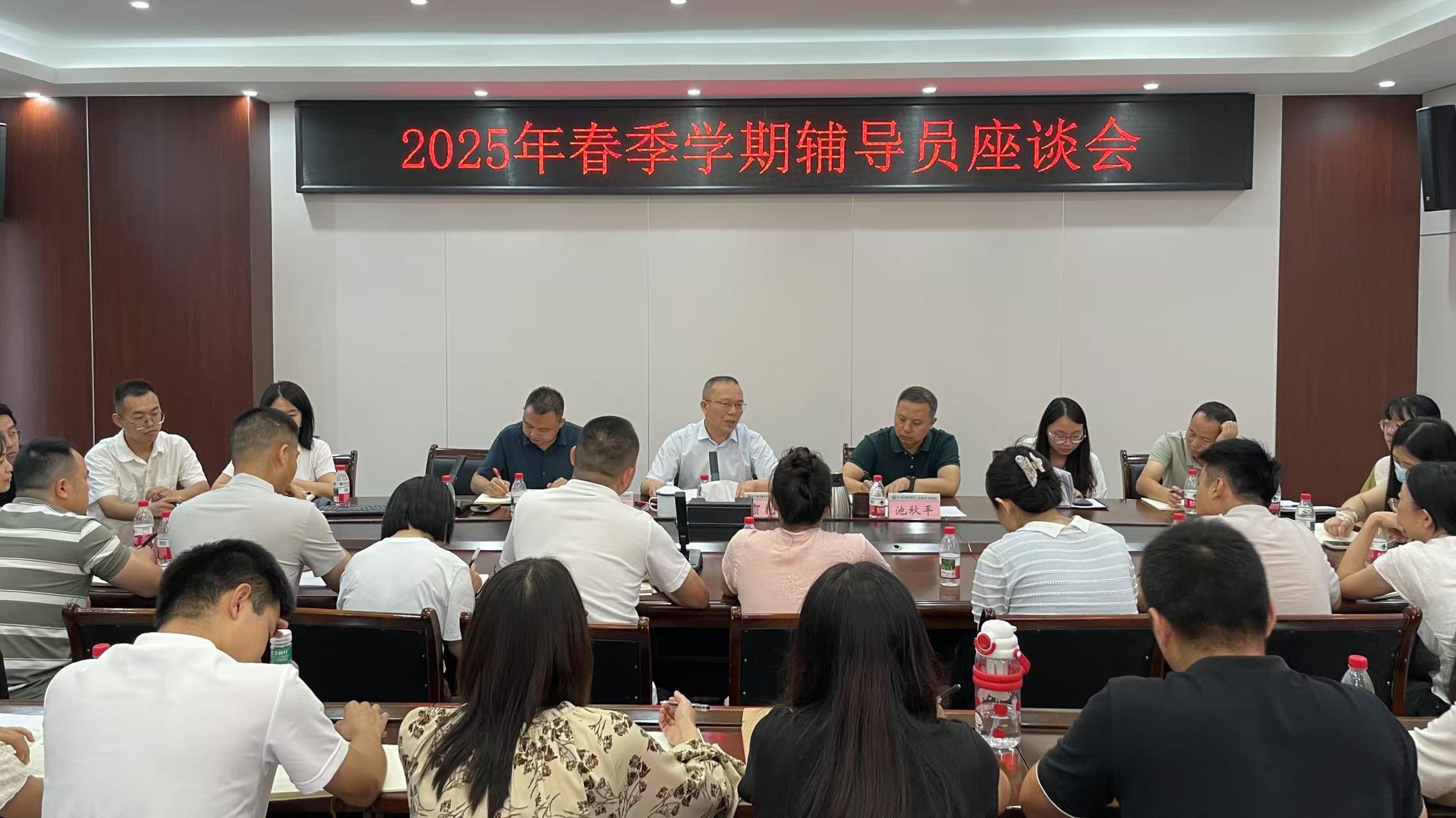 7月9日下午,学校召开2025年春季学期辅导员座谈会。党委书记贺兆轩,党委委员、纪委书记池秋平,党委委员、副校长代学灵出席会议,党委组织部、党委教师工作部、党委办公室、党委学生工作部负责人、团委、各二级学院党总支负责人、全体专职辅导员、内江校区班主任代表参加座谈交流,代学灵主持座谈会。