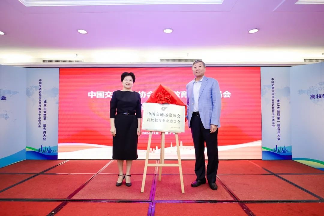 中国交通运输协会胡亚东会长、北京交通大学副校长高艳共同为中国交通运输协会高校教育专业委员会成立揭牌。