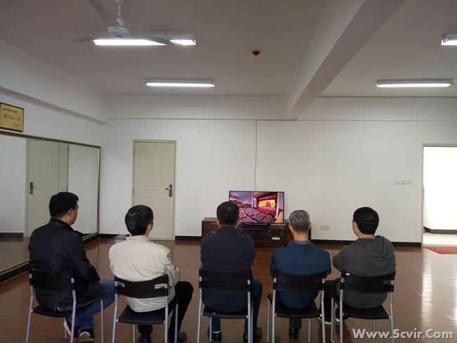 图:学院领导在教工之家集中收看十九大开幕会,学习习总书记的大会报告。