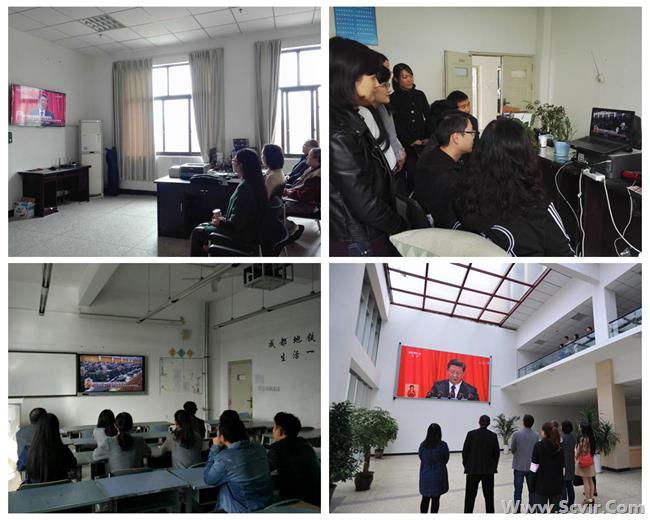 全院师生充分利用电视、网络、手机APP及公共视频资源等,收听收看开幕会盛况,认真聆听、学习习近平总书记代表十八届中央委员会向大会所作的报告。