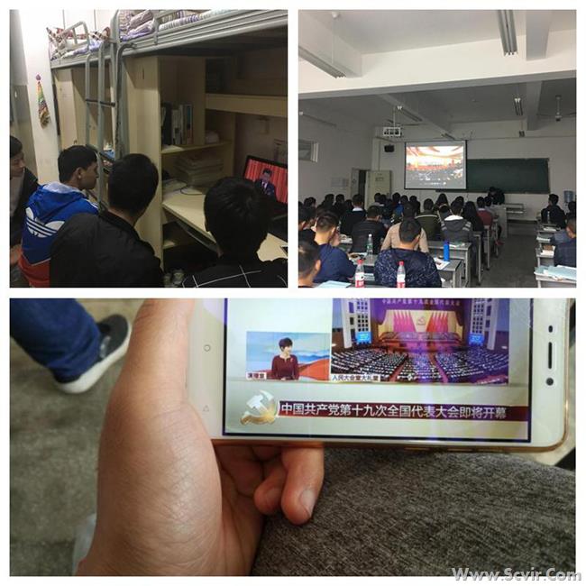 图:学生采取寝室分散收看、教室集中收看、个人新媒体收看等多种形式关注大会直播。