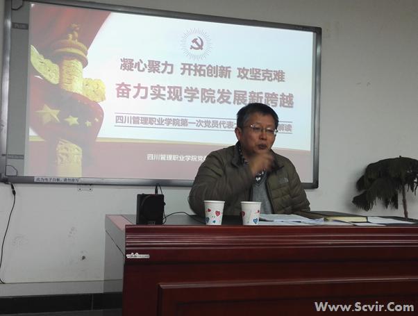 李青锋书记还为党员教师们解读了我院第一次党员代表大会党委工作报告《凝心聚力开拓创新 攻坚克难 奋力实现学院发展新跨越》,客观分析学院面临的种种困境,展望学院发展愿景,提出攻坚克难的实施策略,要求党员教师要在学院跨越式发展中勇立潮头,迎难而上,为学院的发展起到示范先锋作用。