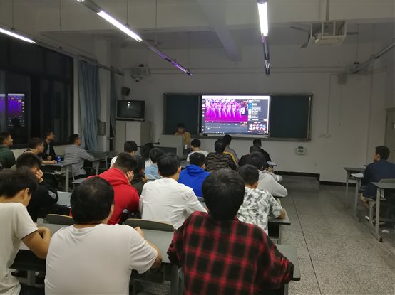 (学生观看学院国庆晚会直播)